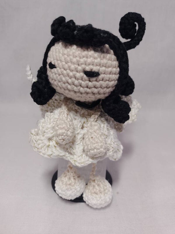 Cette Ange à la robe de couleur pailletée différente est là pour te protéger, te soigner, cela dépend bien sûr des qualité thérapeutique de sa pierre qui est la cristal de Roche